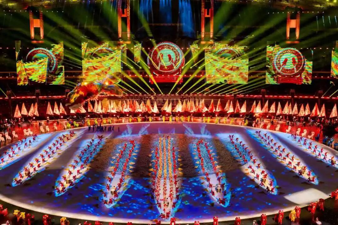 第三章《同梦同圆》以木棉盛开花舞绽放为意象核心,以湾区交响谱写时代乐章,展现体育强国风华和中华儿女同梦同圆、共创未来。